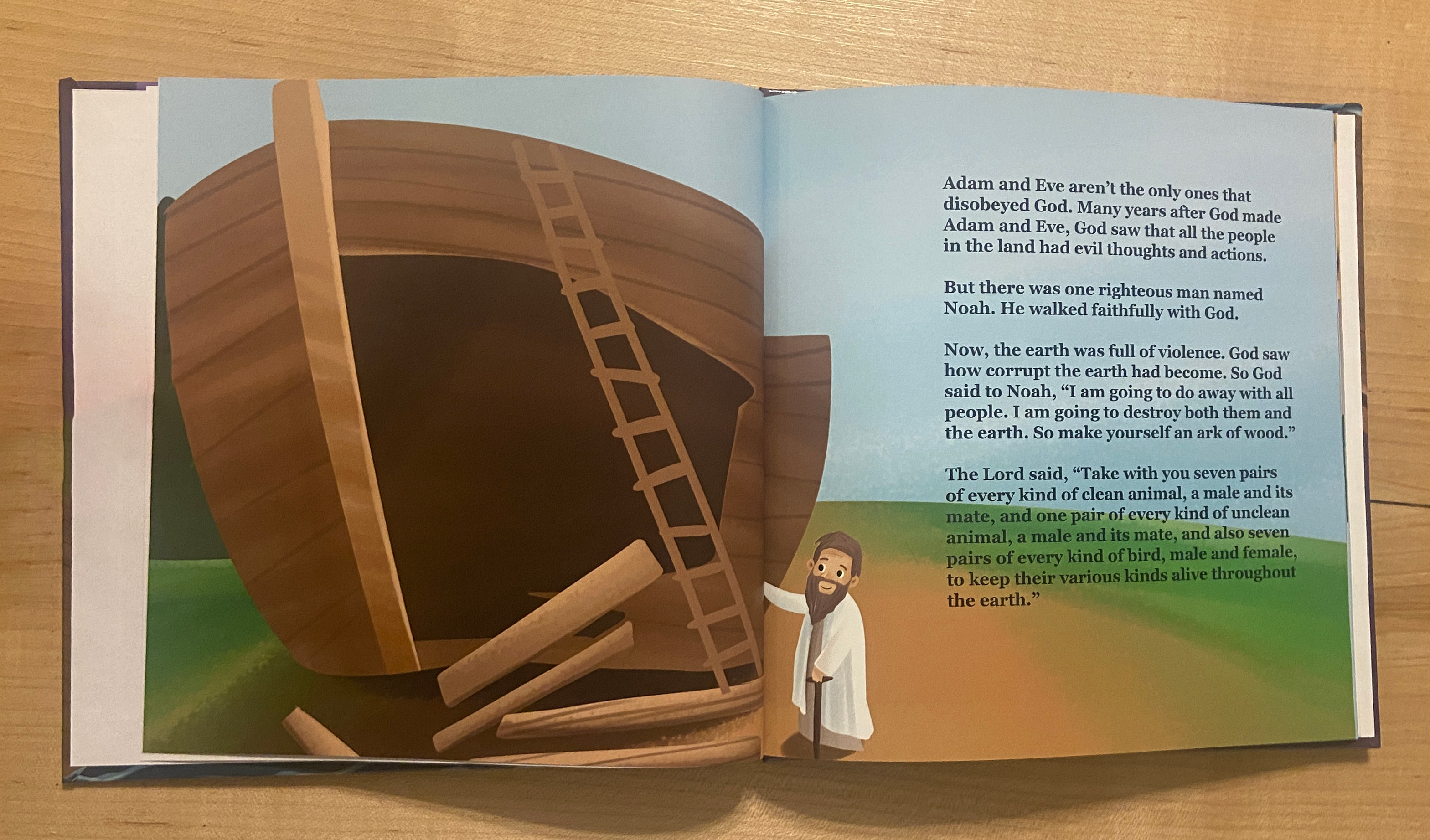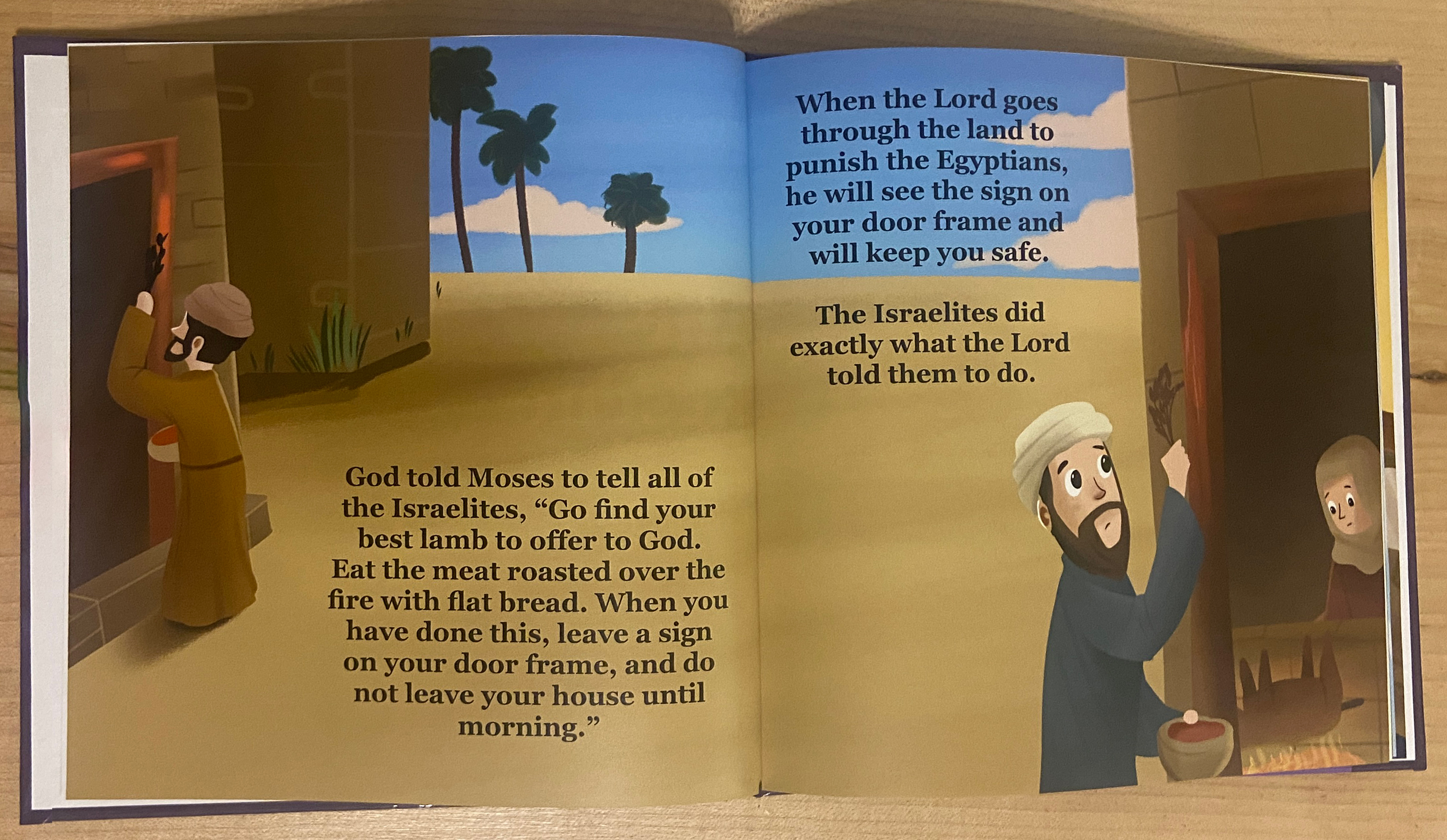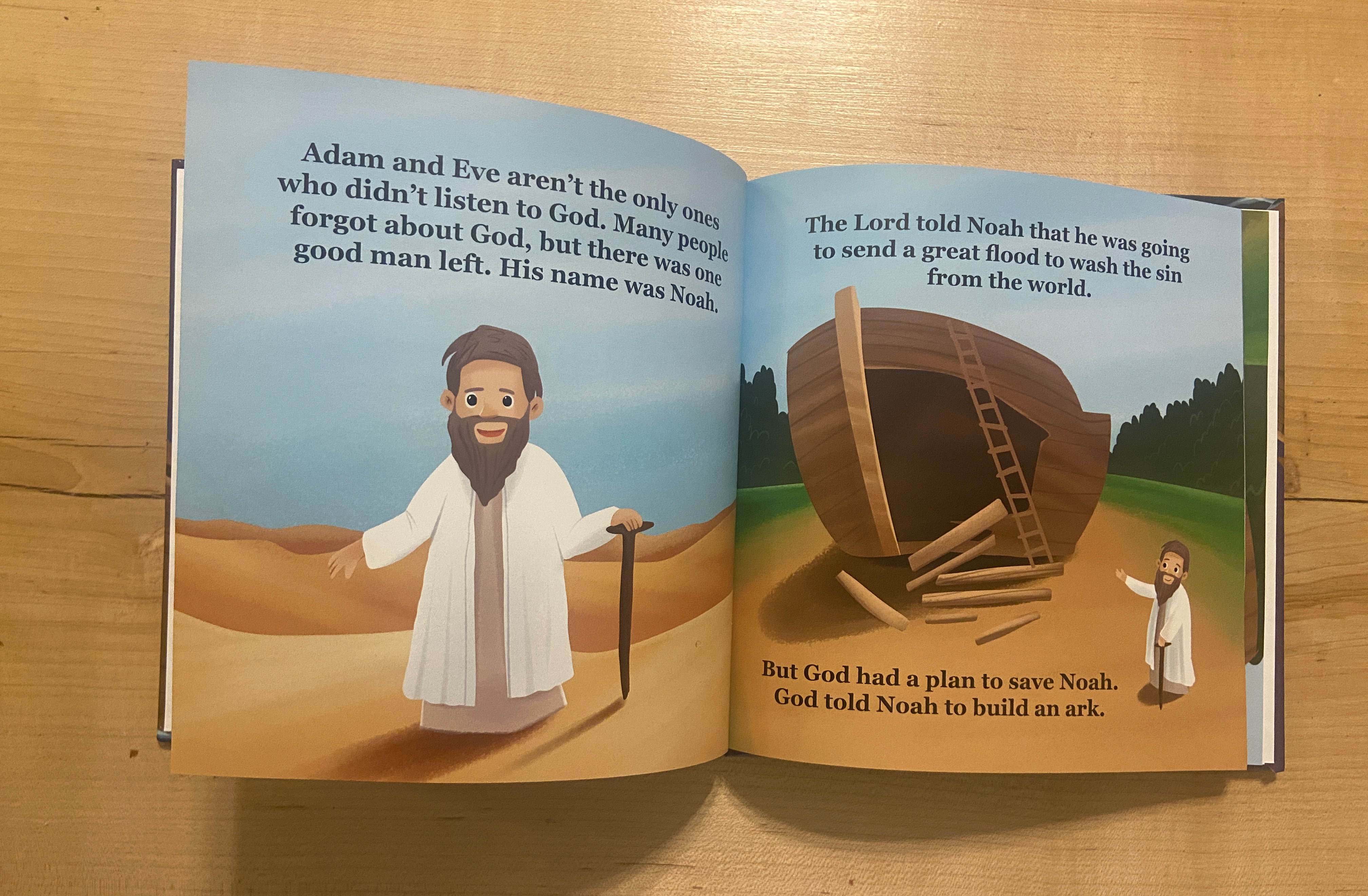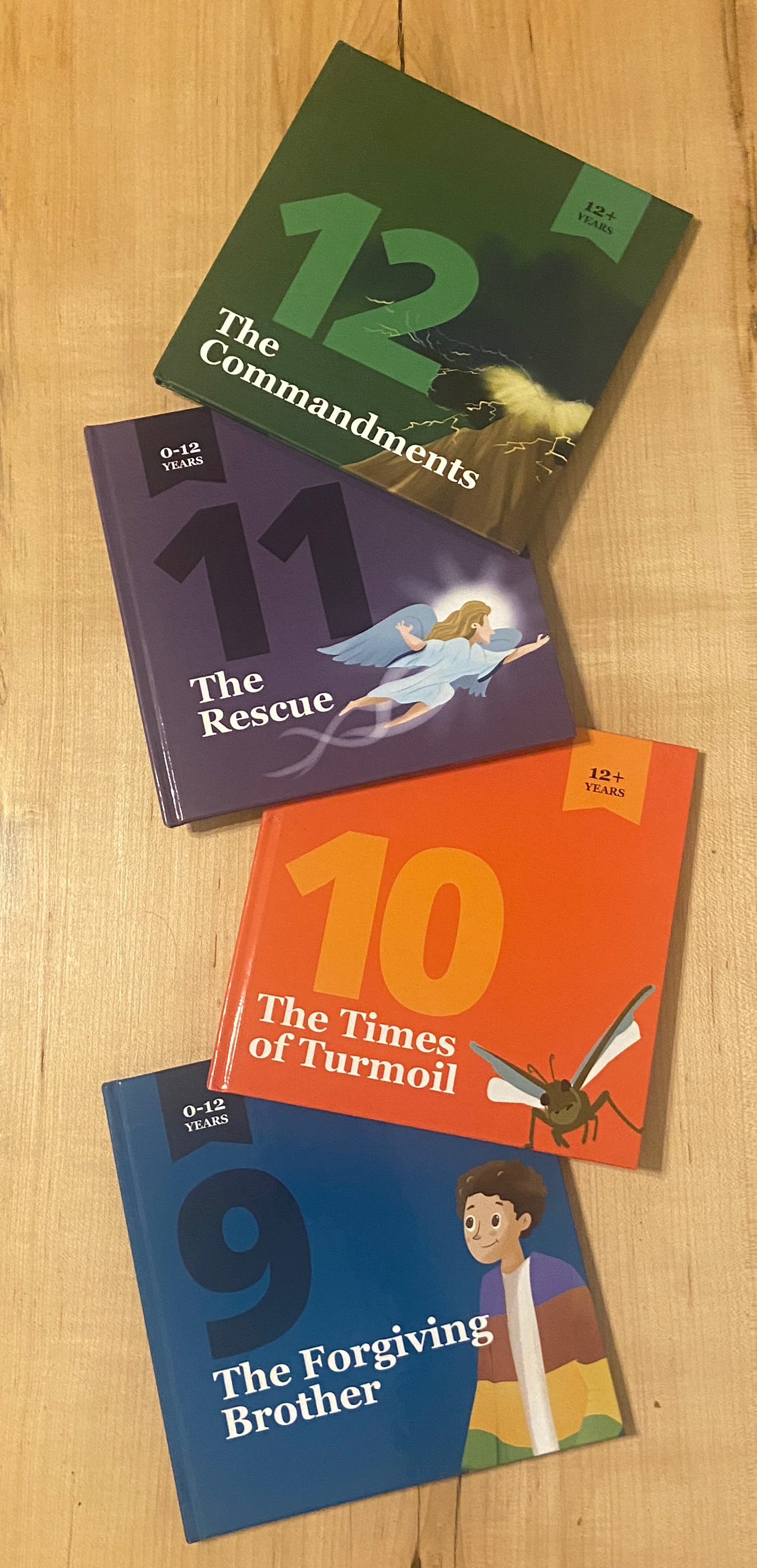 Take a sneak peek into some of the books in the set! Each of the 24 books contains two versions of the same story—start from one side for the children’s version, or flip it over and start from the other side for the young adult/teen version! Each book includes a “Reflect” section in the middle to separate the two versions—this spread contains conversation-starting bible study questions to get your family talking more about the story!