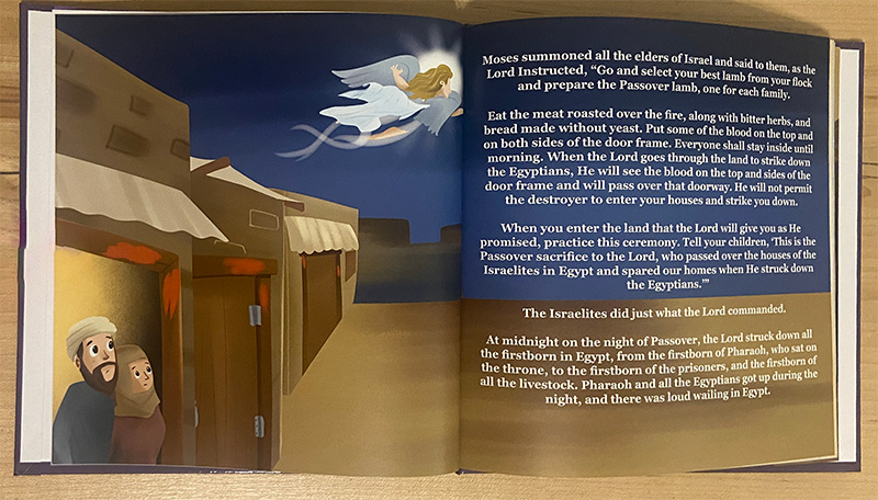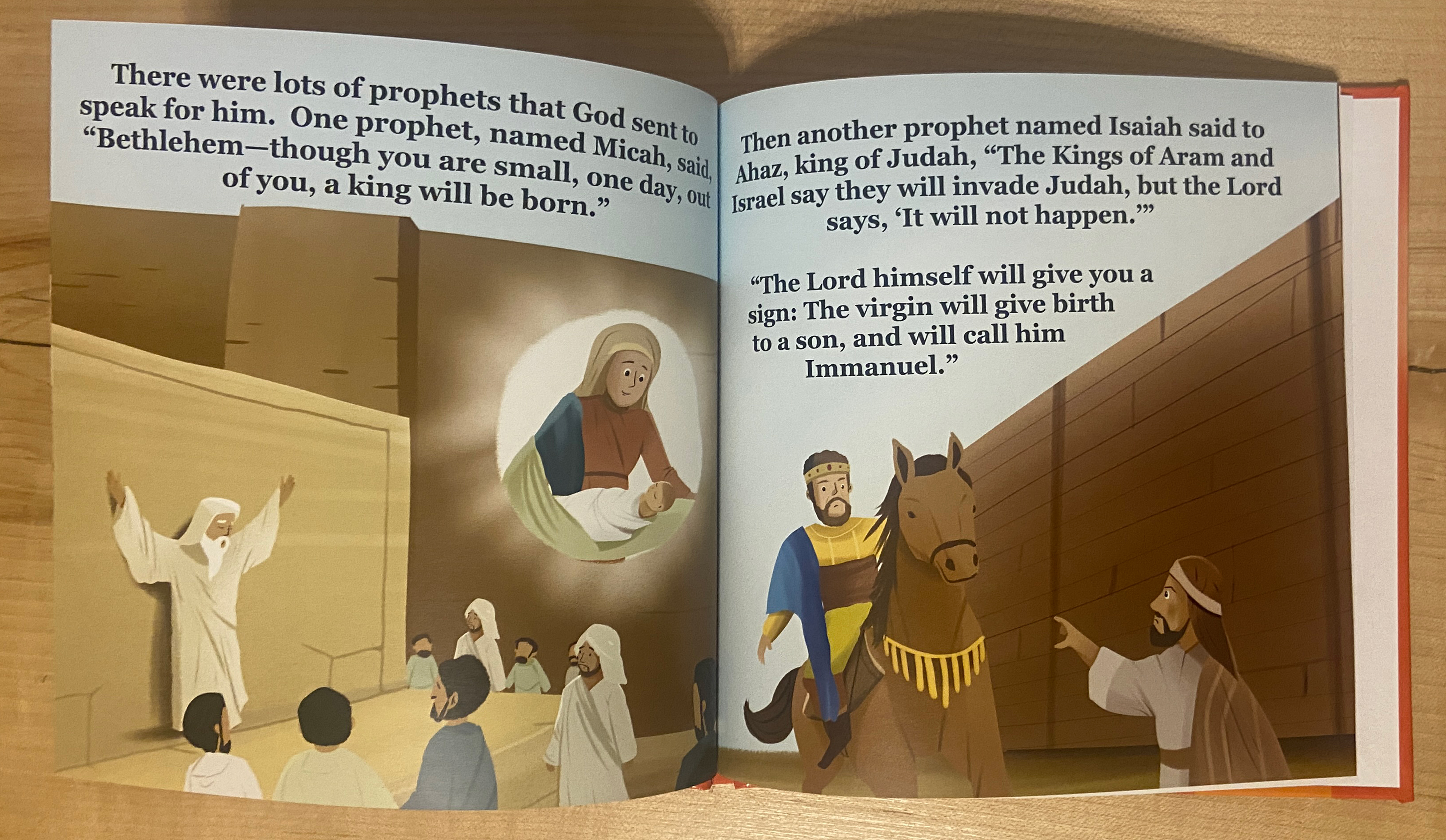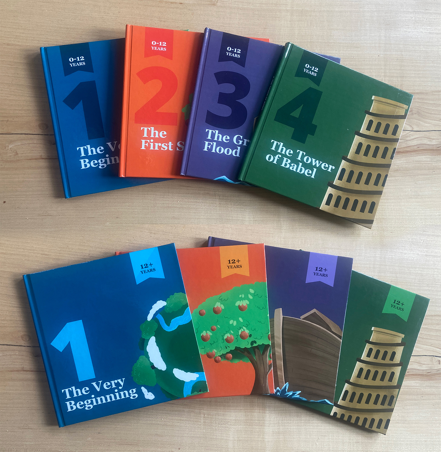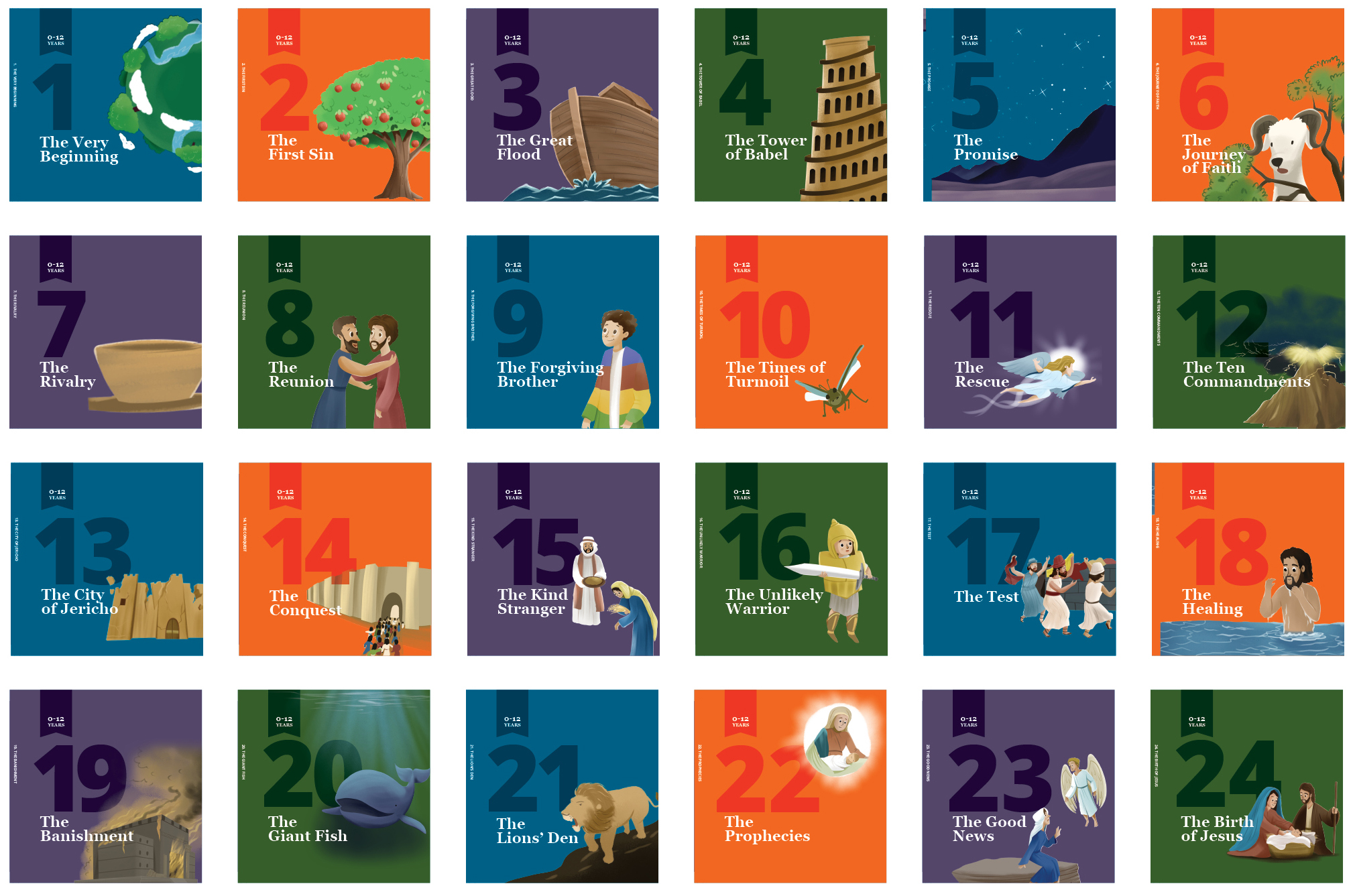 Take a sneak peek into some of the books in the set! Each of the 24 books contains two versions of the same story—start from one side for the children’s version, or flip it over and start from the other side for the young adult/teen version! Each book includes a “Reflect” section in the middle to separate the two versions—this spread contains conversation-starting bible study questions to get your family talking more about the story!